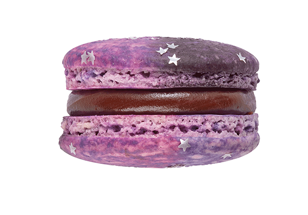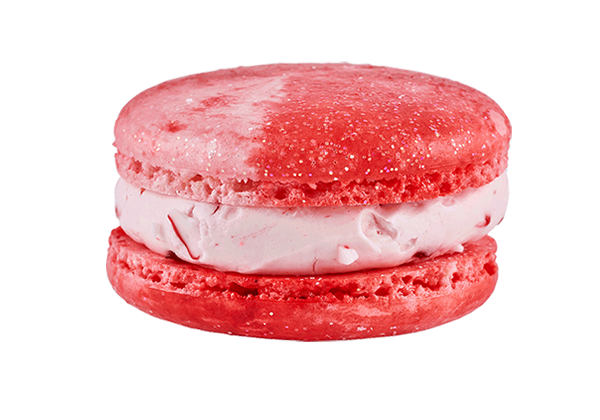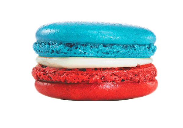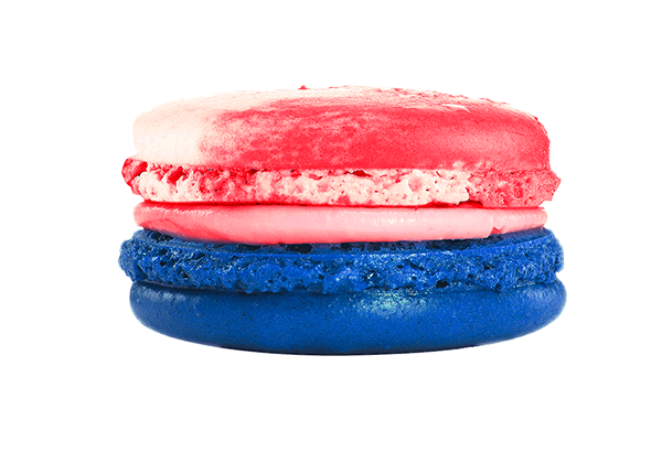 Red, white, and blue with silver stars on top. Our Cherry Firecracker Macaron has a rockin' poppin' candy surprise!