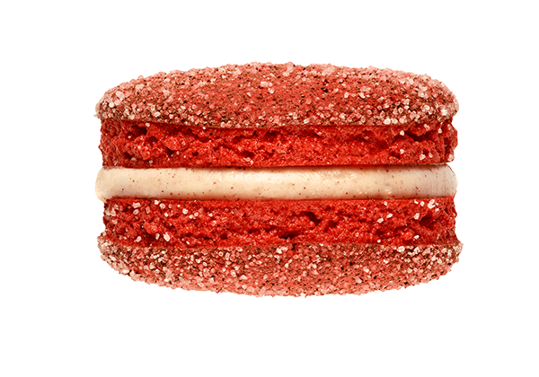 Two flavors come together in perfect harmony in our Cranberry Orange macaron!