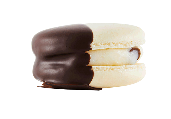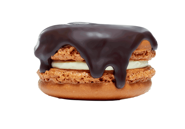 Dana's favorite dessert transformed into a Macaron. The Chocolate Molten Macaron has a milk chocolate shell filled with dark chocolate ganache and a rich molten center!