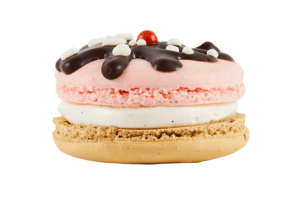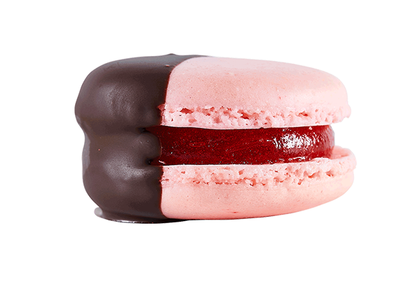 Citron, orange, and cranberry in perfect harmony. Get your martini glass ready for the Cosmopolitan Macaron!