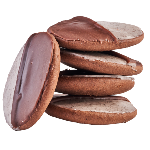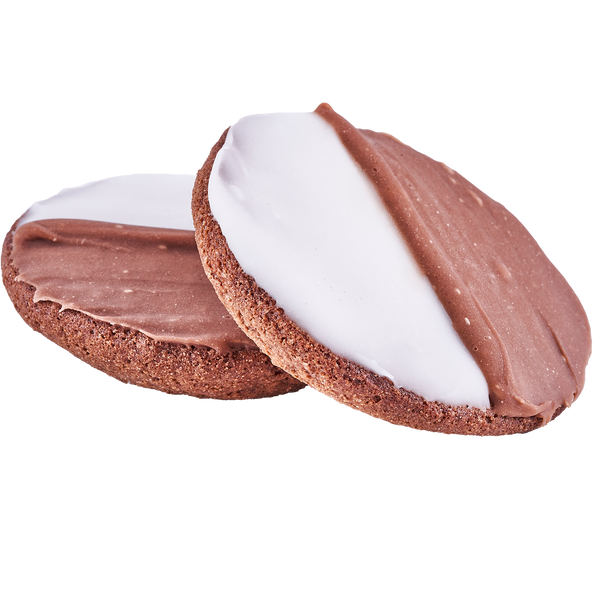 The Classic Black and White Cookie with a Hot Chocolate Twist. Baked with hot chocolate and frosted with marshmallow and chocolate frosting.