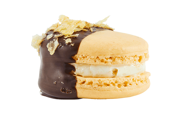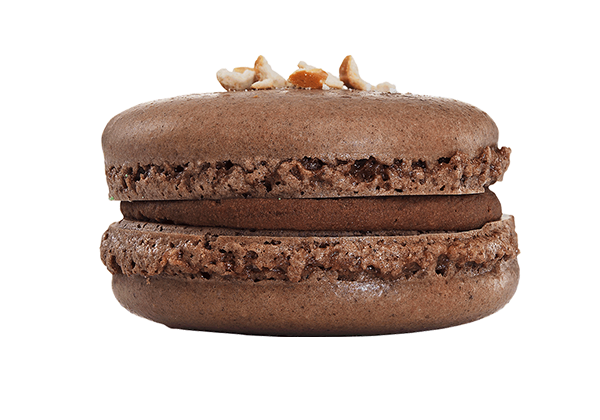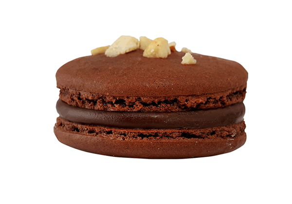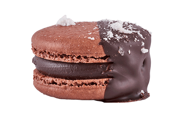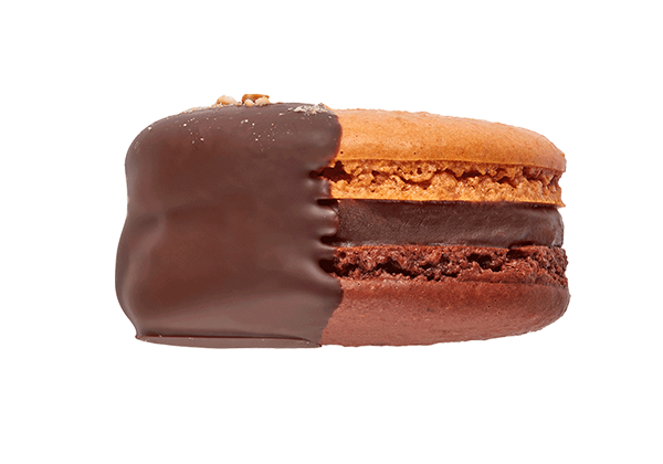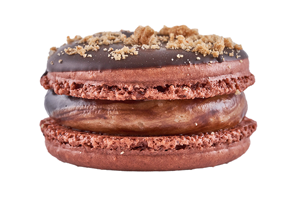 The deliciously sweet and salty chocolate Macaron is baked to perfection and topped with gluten free pretzel crumble.