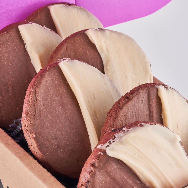 Classic Black & Whites with a Valentine's Day twist! These cookies are nut-free and as always, gluten-free.