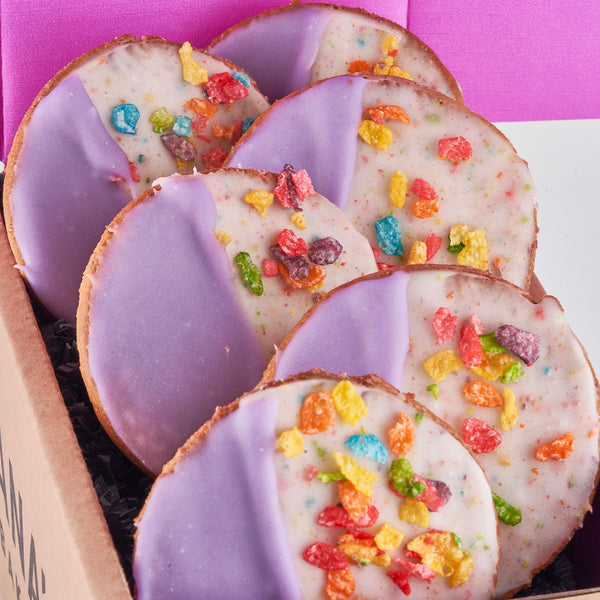 Our Fruity Cereal Macaron is your childhood treat all grown up. Enjoy the sweetness of the fruity flavor without the sugar overload.