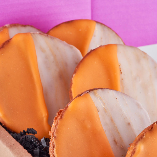 The Orange Creamsicle Macaron captures the original taste of summer. A bright, citrus shell filled with a cool, creamy center.