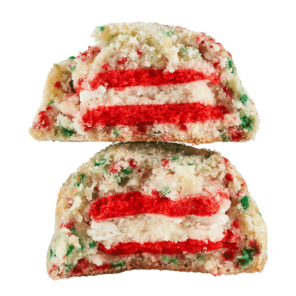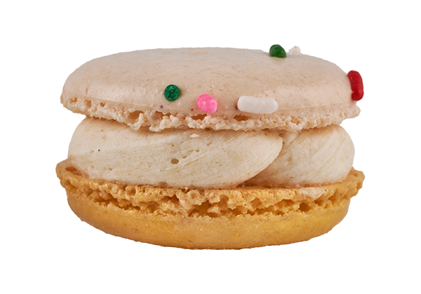 Inspired by a long-time holiday favorite, the Sugar Cookie Mookie is a buttery sugar cookie filled with our sugar cookie macaron!