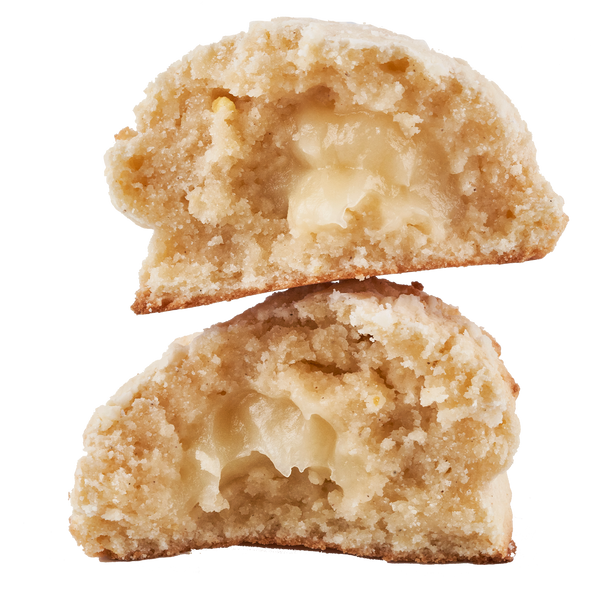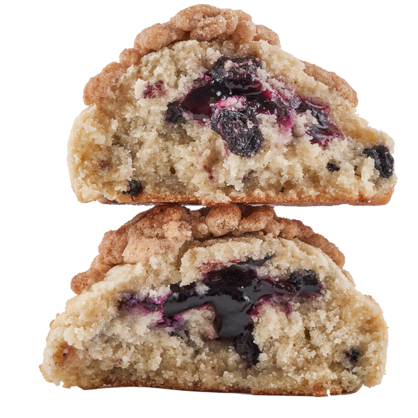 Our Lemon Crinkle cookie now stuffed with lemon curd and filled with juicy blueberries for this classic spring favorite!