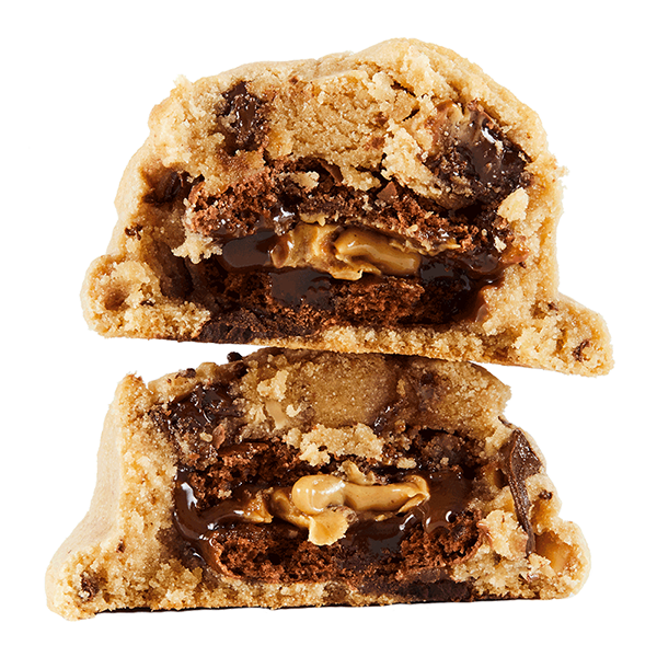 Your favorite cookie stuffed with chocolate chips, peanut butter chips, and caramel. Filled with a peanut butter cup for the ultimate salty sweet combo. 100% Gluten Free!