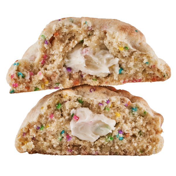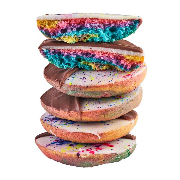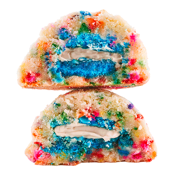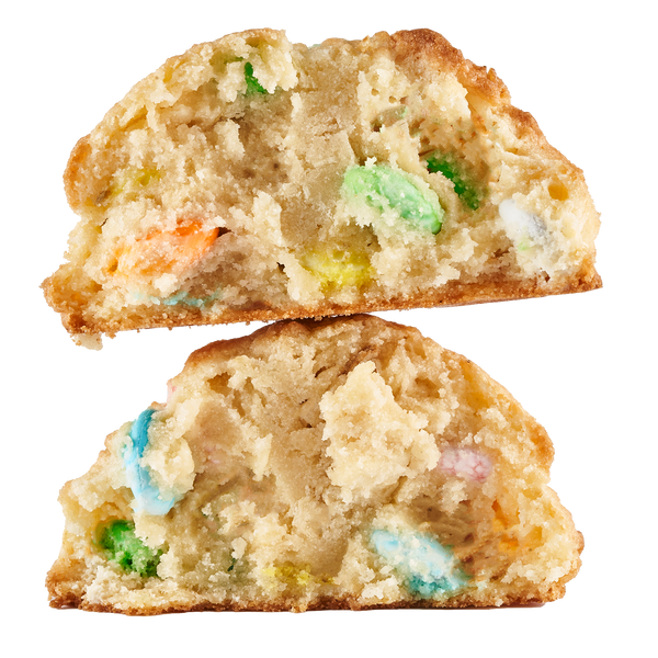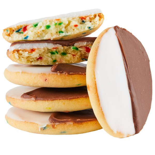 Our classic Black and White cookie now with colorful confetti chips baked right into the dough.