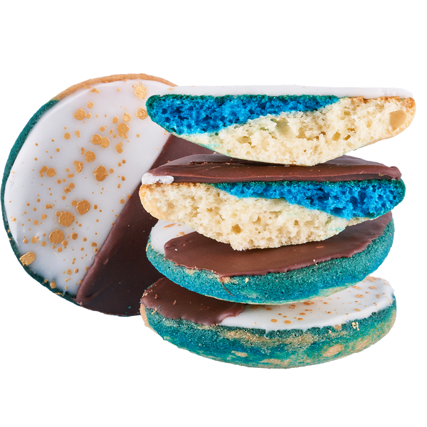 Our classic Black & White cookies have gone blue, white and gold for Hanukkah! Limited edition and ready for 8 crazy nights.