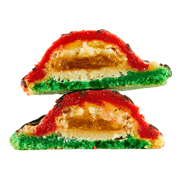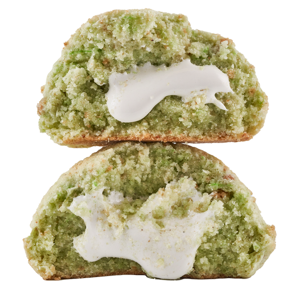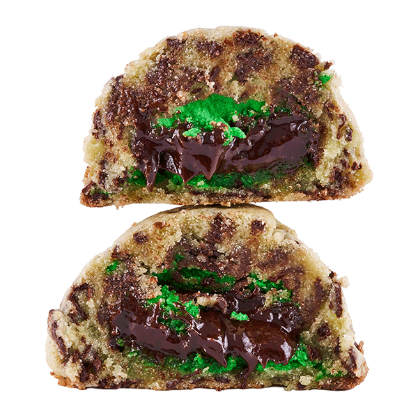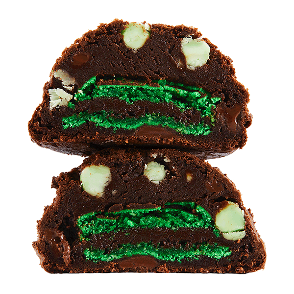 A classic mint chocolate chip cookie stuffed with dark chocolate fudge.
