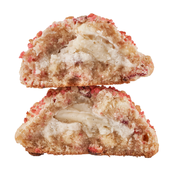 Your favorite ice cream truck staple, Mookie™ style. A strawberry sugar cookie stuffed with our Strawberry Shortcake macaron and topped with the iconic crumb you know and love