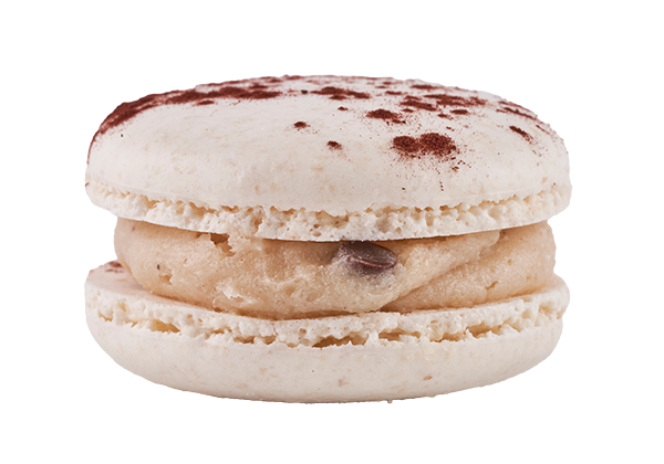 Our OG cookie dough macaron got an upgrade! Cocoa powder shells filled with edible cookie dough stuffed with chocolate fudge